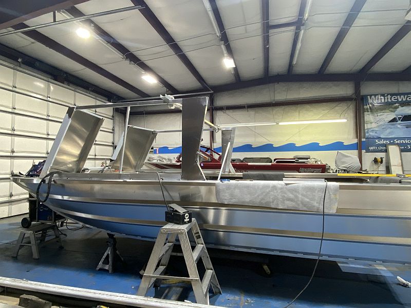 Whitewater Marine’s Fabrication is second to none when it comes to aluminum fabrication. With over thirty years of experience, our shop crew can build new life into your old boat and bring back that shine or fix that bottom grinding mistake. Custom modifications, additions and repairs are done to your new or old boat with special attention to detail. Our fine reputation has been built on the ability to fabricate or repair the boat of your dreams.